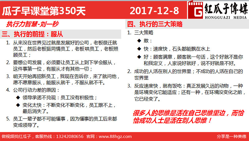 2、要想公司發(fā)展,必須要讓員工從上到下學(xué)會(huì)服從,這件事第一位,有服從才有其他一切;