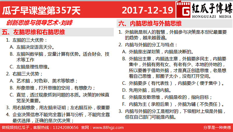 3、內(nèi)腦與外腦的分工是相對的,下級相對上級是外腦,但在自己部門可能是內(nèi)腦。
