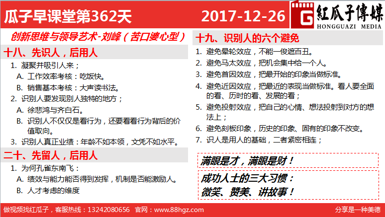4、避免近因效應(yīng),把最近的表現(xiàn)當(dāng)做標(biāo)準(zhǔn)??慈艘娴目?、歷時(shí)的看、發(fā)展的看;