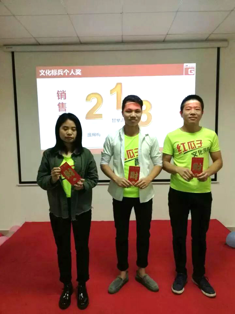 紅瓜子這是一個(gè)可以真正鍛煉一個(gè)人的平臺(tái),它不但有各種獎(jiǎng)項(xiàng),這里還可以學(xué)習(xí)到非常多的理論知識(shí),我的改變是從文化標(biāo)兵這個(gè)點(diǎn)出發(fā)的,文化標(biāo)兵獎(jiǎng)雖然剛剛設(shè)立沒(méi)有多久,但起到的作用是巨大無(wú)比的。通過(guò)文化標(biāo)兵的評(píng)比,對(duì)內(nèi)可以提高同事的理論知識(shí)掌握,對(duì)外可以起到宣傳企業(yè)品牌的好處,董事長(zhǎng)做文化標(biāo)兵評(píng)比這個(gè)決定真的是太正確了。