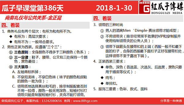 1. 商務(wù)禮儀有兩個層次:有所為和有所不為。