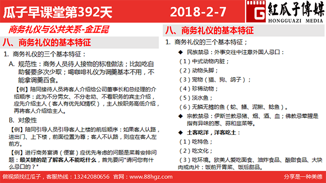 紅瓜子傳媒首頁>相關(guān)資訊>最新動(dòng)態(tài)>紅瓜子早課堂第392期:商務(wù)禮儀的三個(gè)基本特征