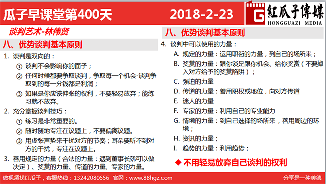 紅瓜子早課堂第400期:優(yōu)勢談判的基本原則