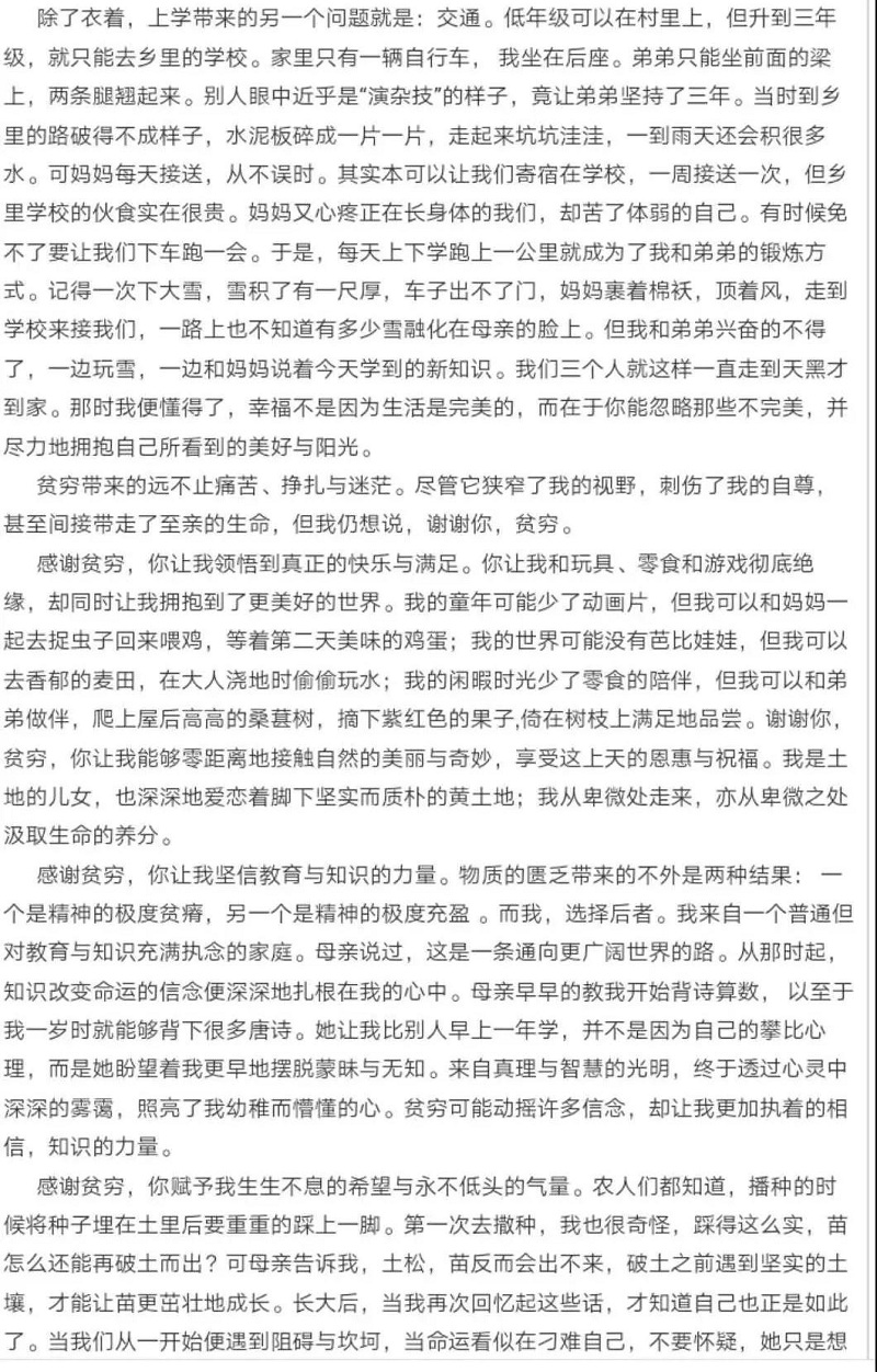 寫文章感謝貧窮,感動(dòng)了網(wǎng)友