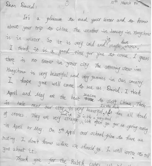 Ken Morley 一家人回國(guó)后,馬云和 David 成了筆友。馬云定期給 David 和 Ken 寫信。