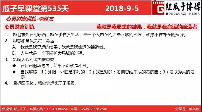 紅瓜子傳媒首頁>相關(guān)資訊>最新動(dòng)態(tài)>瓜瓜早課堂第535期-心靈財(cái)富訓(xùn)練