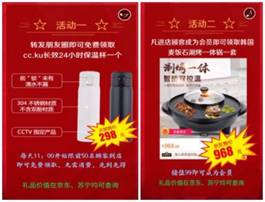 引流產(chǎn)品是,你轉(zhuǎn)發(fā)朋友圈即可免費領(lǐng)取價值298元的保溫杯一個(限名額、時間)。開門產(chǎn)品是,凡是進店顧客成為會員即可免費領(lǐng)取價值968元的韓國麥石飯涮烤一體鍋一套。