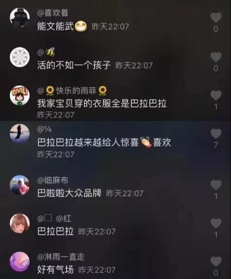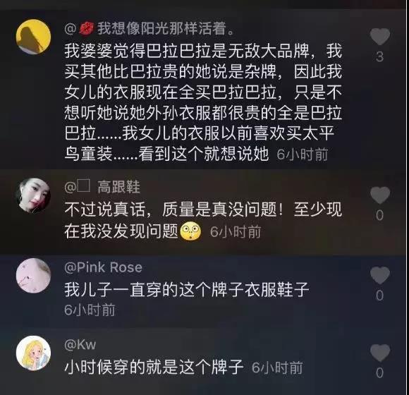 在評(píng)論中,無數(shù)網(wǎng)友開啟了對(duì)這個(gè)國民童裝品牌的熱議,很多人感慨自己是穿著巴拉巴拉衣服長大的,成為了父母還在繼續(xù)給孩子穿,看到這條視頻,無意中引起了很多童年的記憶和共鳴。