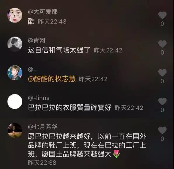 在評(píng)論里,不少內(nèi)容是大眾對(duì)于巴拉巴拉品牌和產(chǎn)品的認(rèn)可。甚至一些巴拉巴拉的工廠和面料供應(yīng)商員工看到自己服務(wù)過的品牌在時(shí)裝周的表現(xiàn),都由衷感受到自豪感。