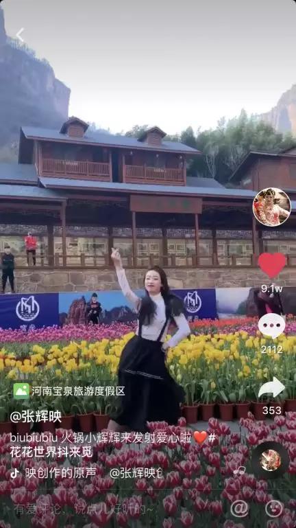 在活動中,“抖音火鍋一姐”張輝映通過精彩的舞蹈,與寶泉景區(qū)景色融合相應(yīng),而“小輝輝”的這支抖音視頻點(diǎn)贊高達(dá)9.3w,向廣大網(wǎng)友展現(xiàn)出了寶泉景區(qū)的不同美景。小輝輝的眾多粉絲也紛紛互動評論、點(diǎn)贊,他們留言稱:“又標(biāo)記一個絕美之地”。