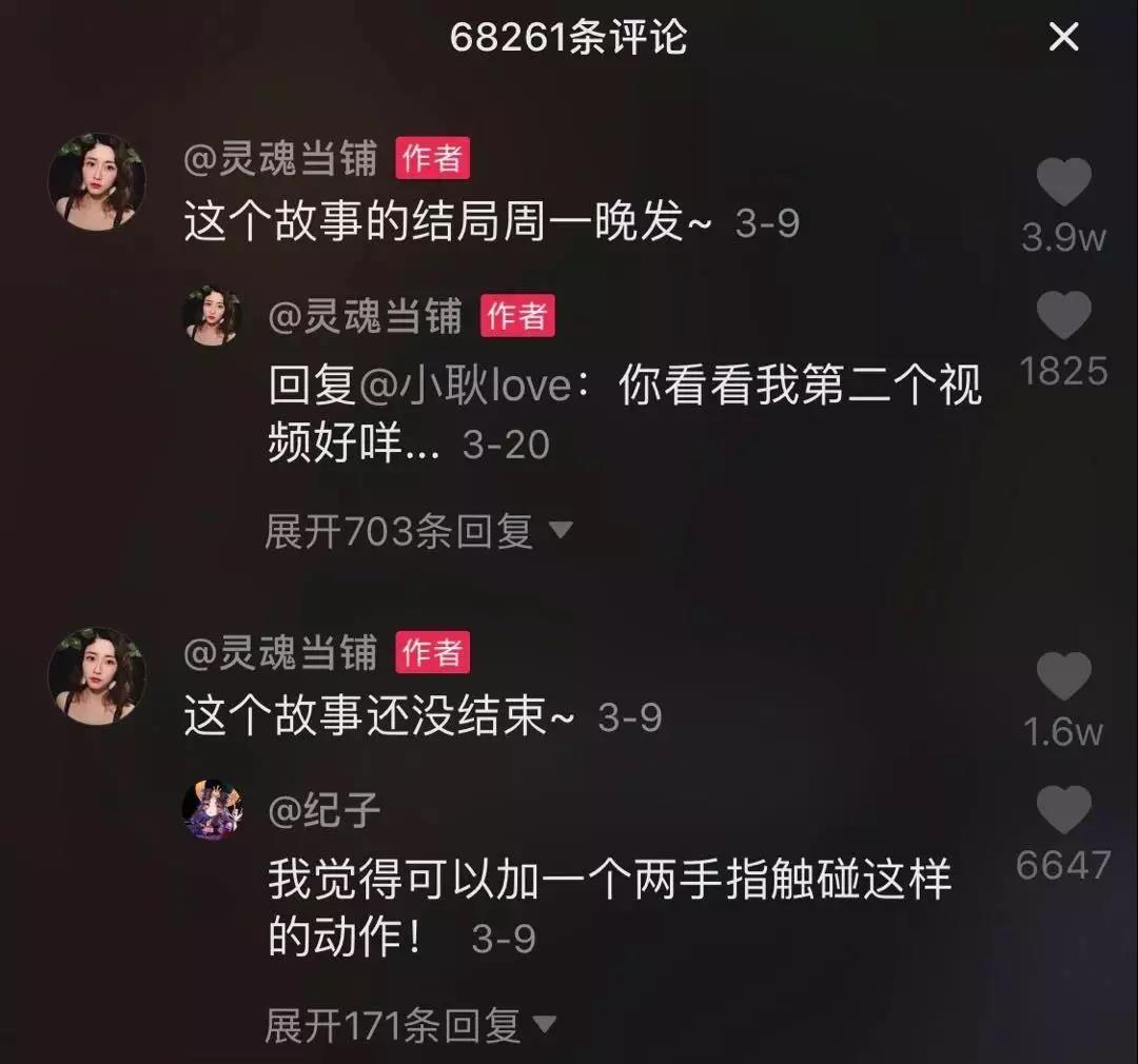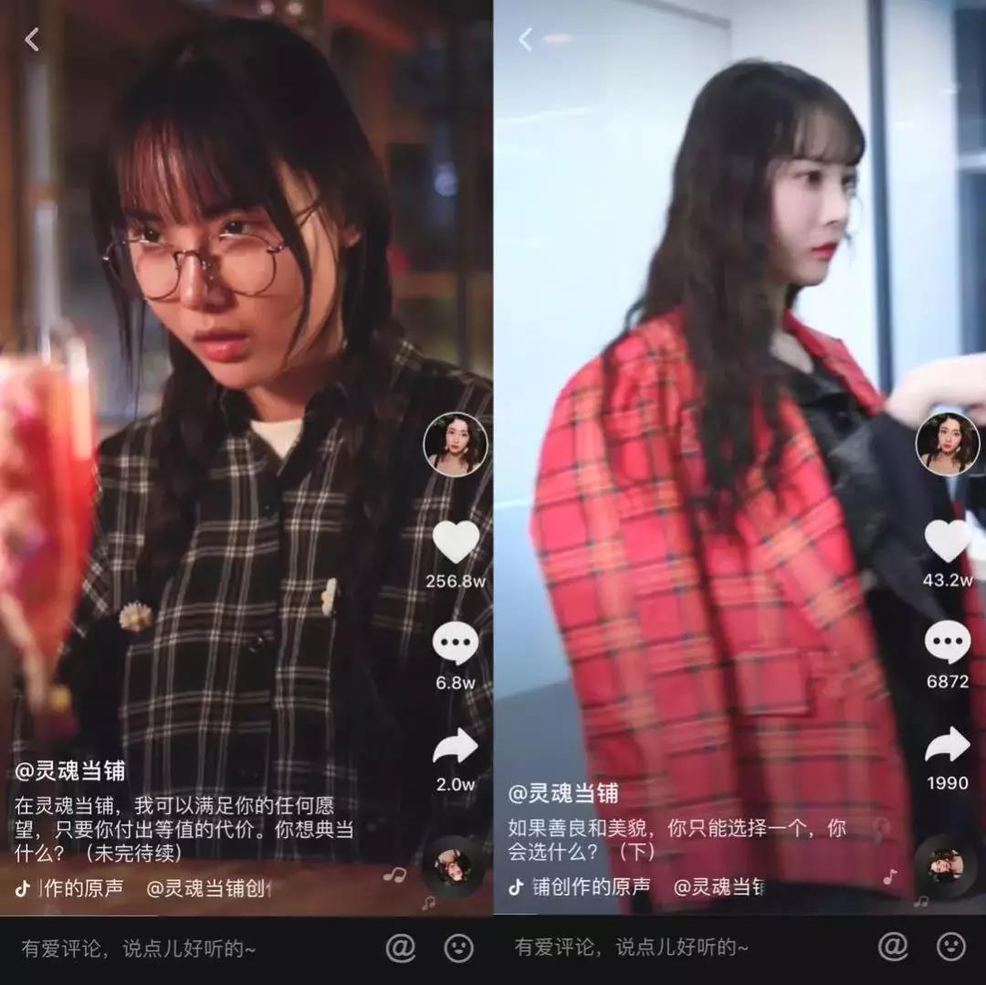 事實上,抖音上有很多劇情類賬號,但大多數(shù)是一個視頻一個搞笑段子。不同的是,「靈魂當鋪」一般會用兩支視頻講述一個完整故事,以便讓劇情更飽滿,也能吸引好奇結局的用戶關注。