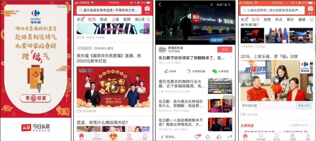 要把握日益稀缺的注意力,傳播環(huán)節(jié)的精準快速必不可少。而巨量引擎為品牌主提供的,就是覆蓋多場景的投放資源。在家樂福的TVC傳播中,今日頭條王牌硬廣及巨量引擎全系特色產(chǎn)品投放使總曝光達到25,970,000,總點擊量達到842,000,平均點擊率3.25%。