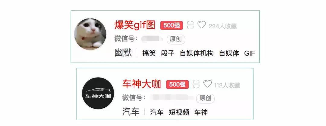 其中我們做的“爆笑gif圖”、“車神大咖“都是都是微信500強(qiáng)的賬號(hào),在搞笑類別、汽車類別排名也都很靠前。