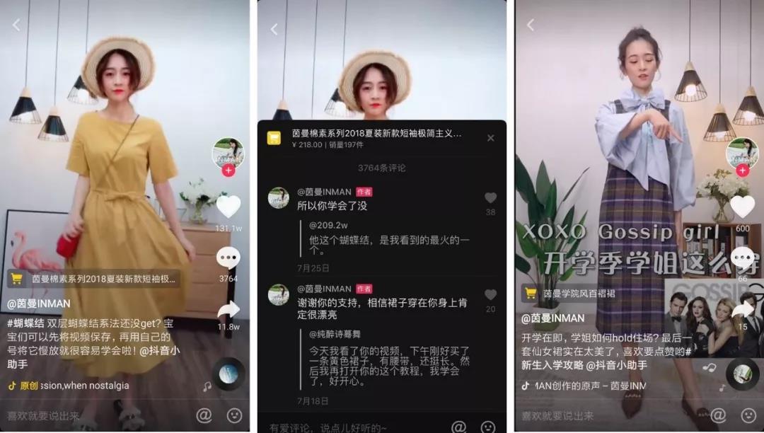 實(shí)用技巧類內(nèi)容,讓用戶在學(xué)習(xí)中“種草”商品。模特身穿茵曼品牌服裝,通過發(fā)一些蝴蝶結(jié)系法、鞋帶系法、領(lǐng)結(jié)教程、絲巾玩法等服飾相關(guān)教程,吸引用戶在學(xué)習(xí)技巧過程中,對(duì)展示的單品產(chǎn)生購買興趣。同時(shí),實(shí)用技巧類視頻的互動(dòng)作用更為明顯,如茵曼品牌主頁中一條超過131w贊的爆款視頻是教如何打雙層蝴蝶結(jié)的視頻,評(píng)論里出現(xiàn)很多關(guān)于系法的詢問和互動(dòng),以及求裙子購買鏈接的評(píng)價(jià),利于粉絲的積累。除服裝類的技巧展示外,鑒于茵曼是女裝品牌,日常運(yùn)營中還會(huì)發(fā)布一些專門針對(duì)女性用戶的話題,如如何拍照更顯腿長、如何擺pose等拍照教程視頻。
