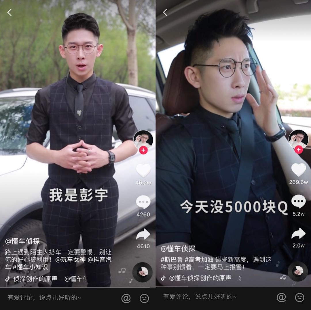 除了以上兩類,還有一種汽車類賬號(hào)在劇情的基礎(chǔ)上,加入了推理分析。