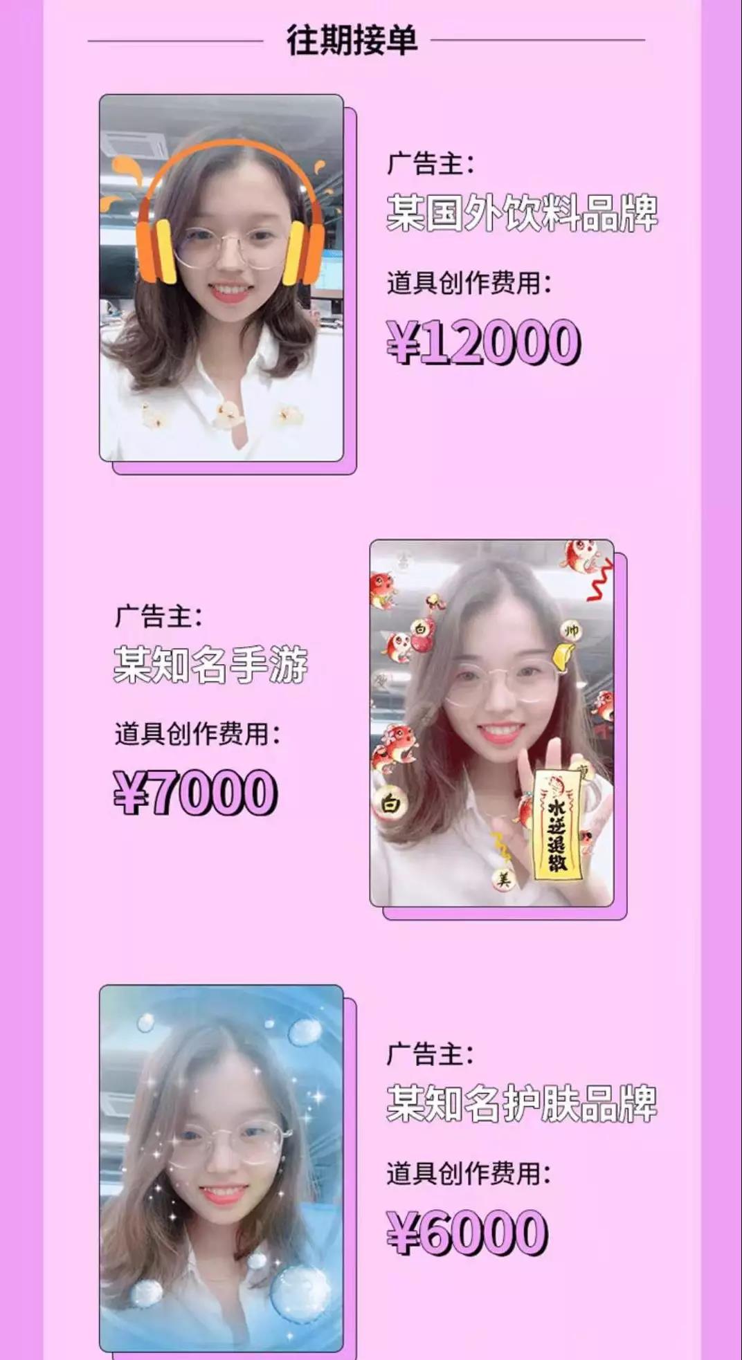 特效商單,賺個零花錢 幾乎所有的抖音特效師都是兼職。他們一般有兩塊收入:參加比賽拿獎金,通過平臺接商單。 根據(jù)抖音公示的計劃,一個商單的價格在數(shù)千到上萬不等。半年時間,白小白接了三四個商單,用他的話說,現(xiàn)在“就是賺個零花錢”。