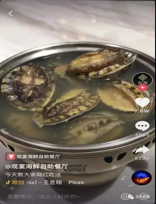 我們根據(jù)“觀宴”的實(shí)際情況和顧客的行為習(xí)慣及愛好,也設(shè)計(jì)了一出鮑魚網(wǎng)紅吃法的視頻,視頻一經(jīng)發(fā)出點(diǎn)贊量達(dá)到7.6萬,評(píng)論達(dá)到4655+。