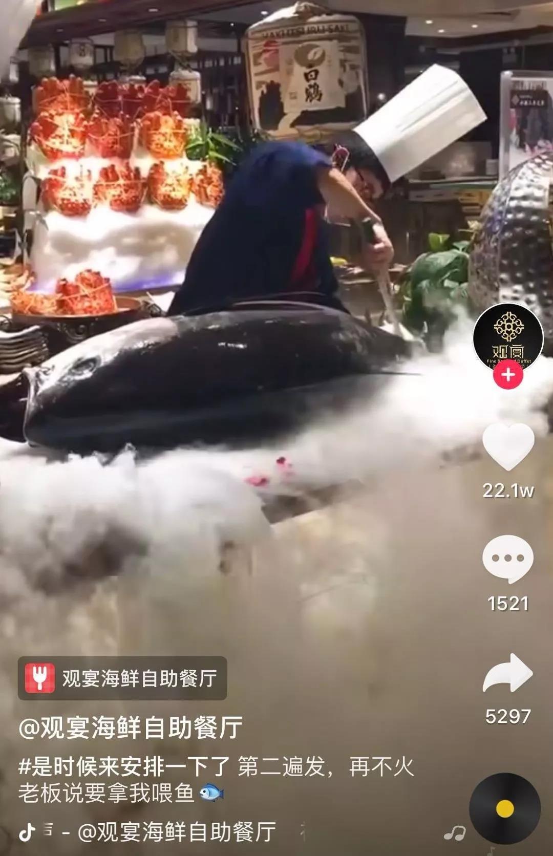 每過一段時(shí)間抖音就會(huì)流出一批“神曲”、流行場(chǎng)景的爆火視頻,我們制定了蹭熱點(diǎn)方案,用抖音上的熱門音頻、熱門拍攝手法、近期熱點(diǎn)進(jìn)行拍攝,為“觀宴”策劃用冰雕制作熱點(diǎn)形象的視頻。